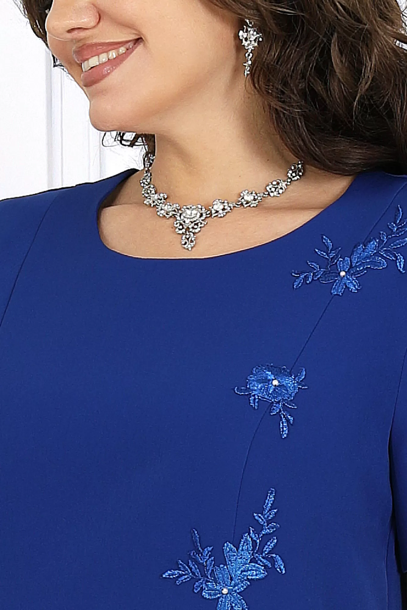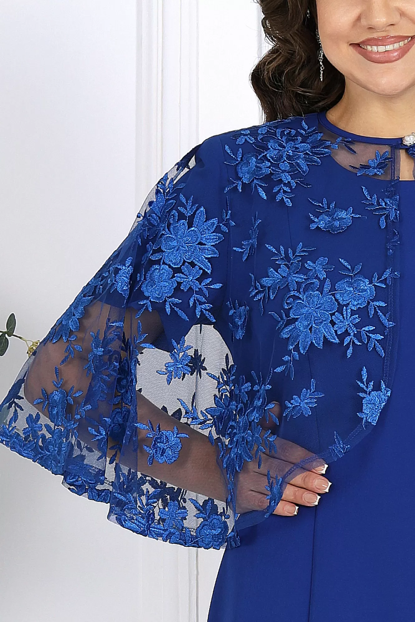 Этот вечерний костюм создан для женщин, которые ценят роскошь в деталях и хотят выглядеть безупречно на любом торжестве — будь то Новый год, свадьба, юбилей или праздничный вечер. Костюм сочетает в себе утончённость, комфорт и продуманную посадку, которые делают образ стройным, уверенным и безупречно нарядным. Лёгкая кружевная накидка из гипюра создаёт эффект многослойности и скрывает зону рук, делая образ благородным и элегантным. Силуэт свободный, комфортный, с аккуратной застёжкой на декоративную пуговицу. Кружевное красиво играет на свету и подчёркивает праздничное настроение.
