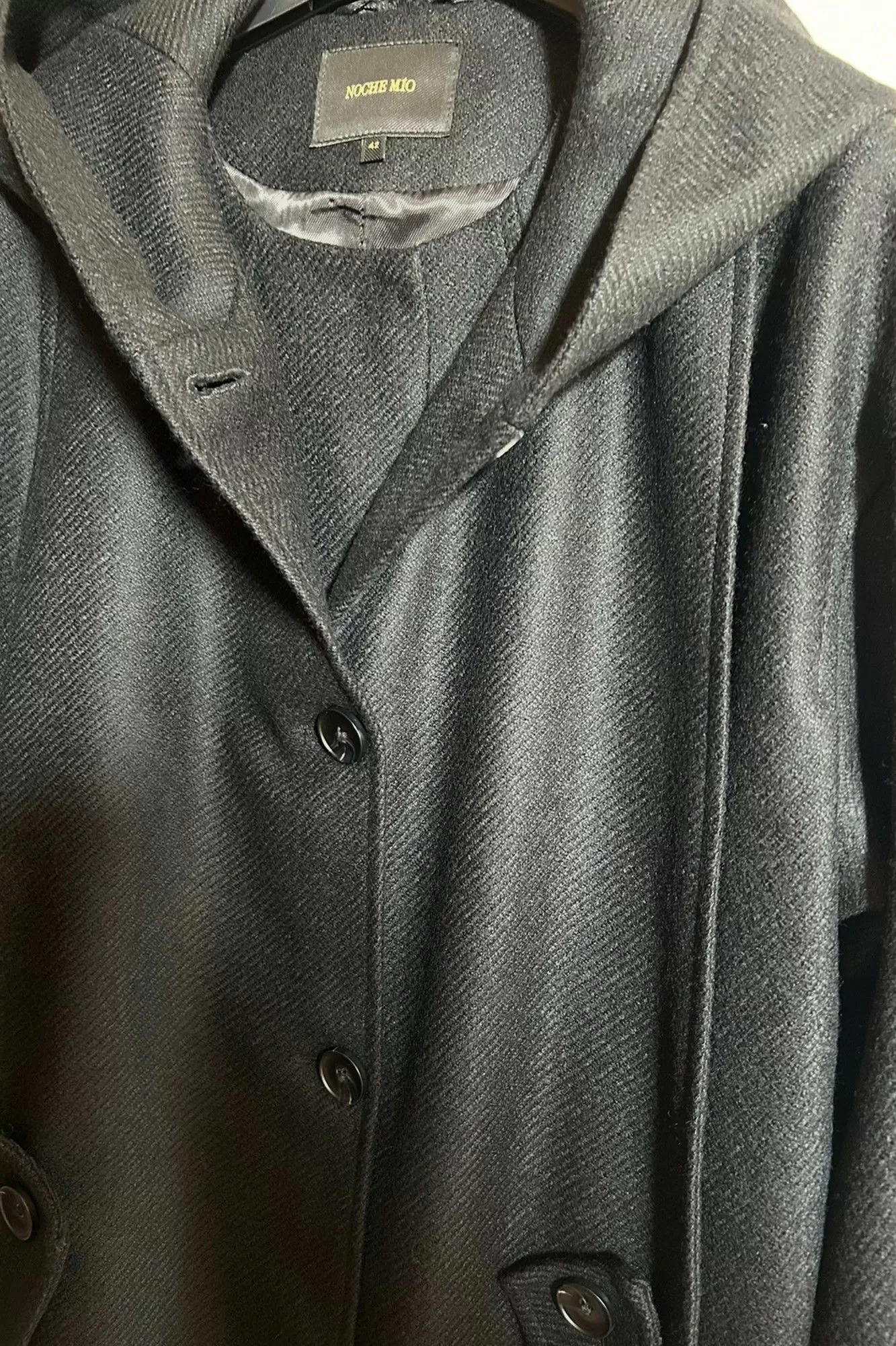 Пальто лаконичного кроя, с круглой горловиной и накладными карманами, с оригинальным дизайнерским решением в виде съёмного капюшона, выполнено из премиального полотна на основе шерсти.