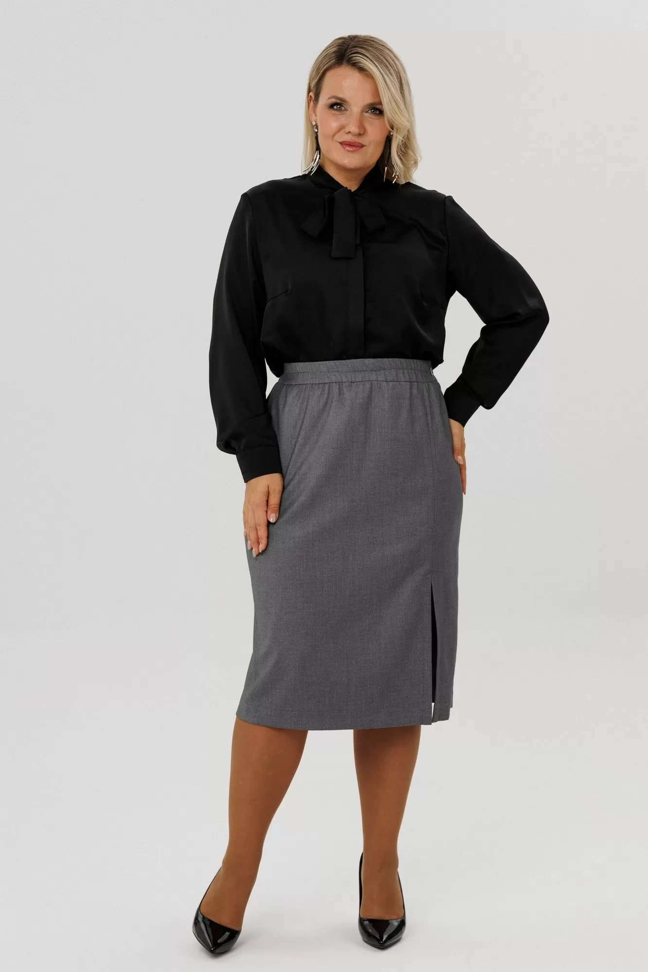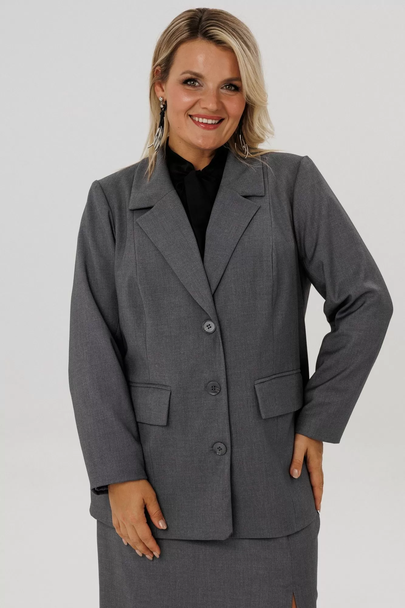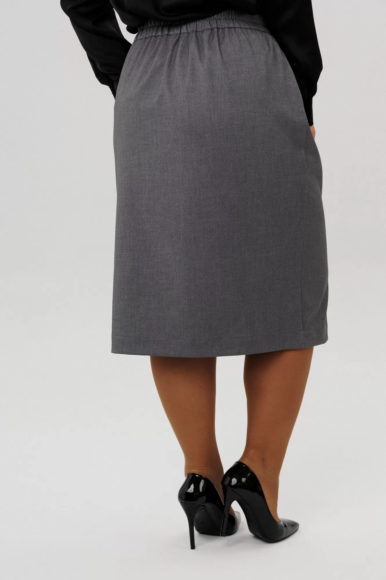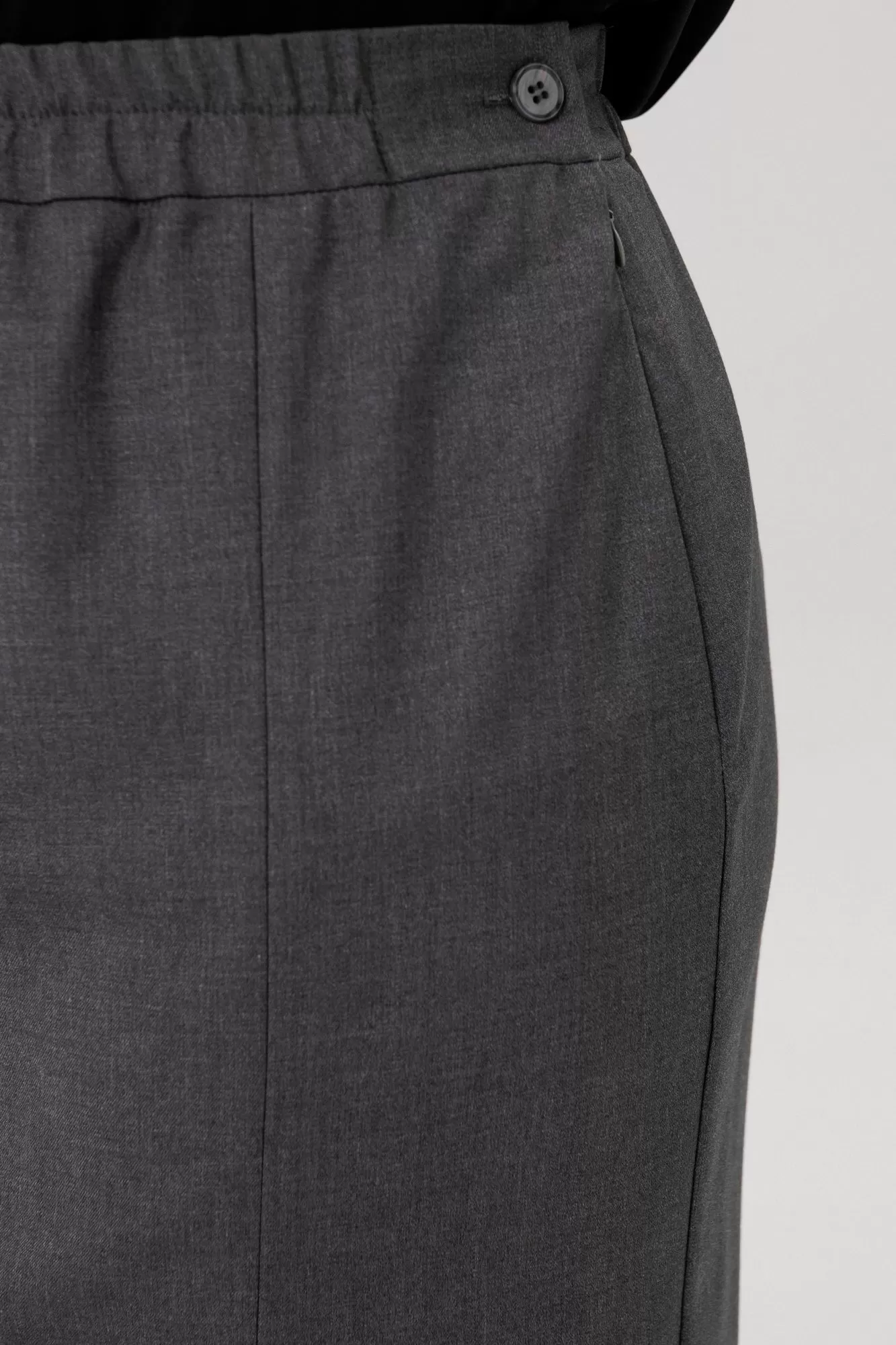 Комплект женский состоит из жакета и юбки. Жакет oversize, однобортный, прямого силуэта на подкладке. Отложной воротник с V-образным вырезом скроет несовершенства и визуально вытянет силуэт, сделает образ модным и стильным. Рукав втачной, двухшовный, полномерный по обхвату. На полочках карманы-клапаны. Отличительным дизайнерским решением являются декоративные пуговицы и съемный пояс. Юбка без подкладки из стрейчевой ткани, свободного покроя, с аккуратным разрезом на ноге. Пояс юбки на широкой резинке, сбоку молния и петля-пуговица.