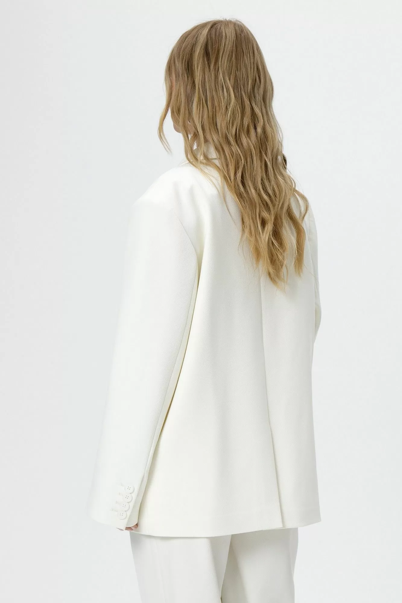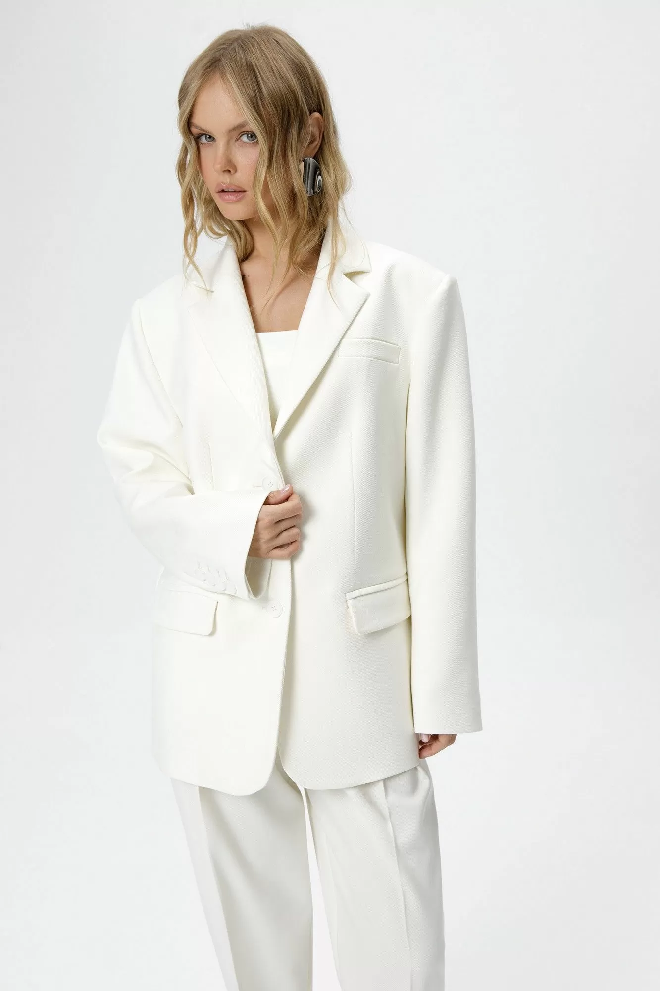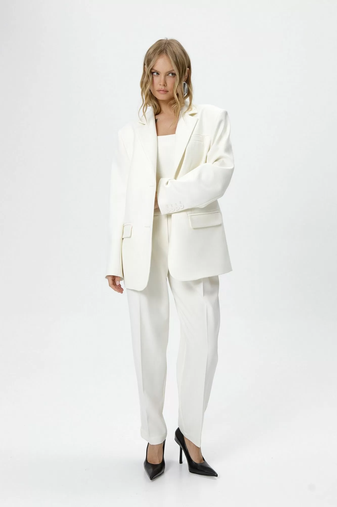 Костюм-двойка из оверсайз жакета и брюк со складками из костюмной ткани в рубчик.