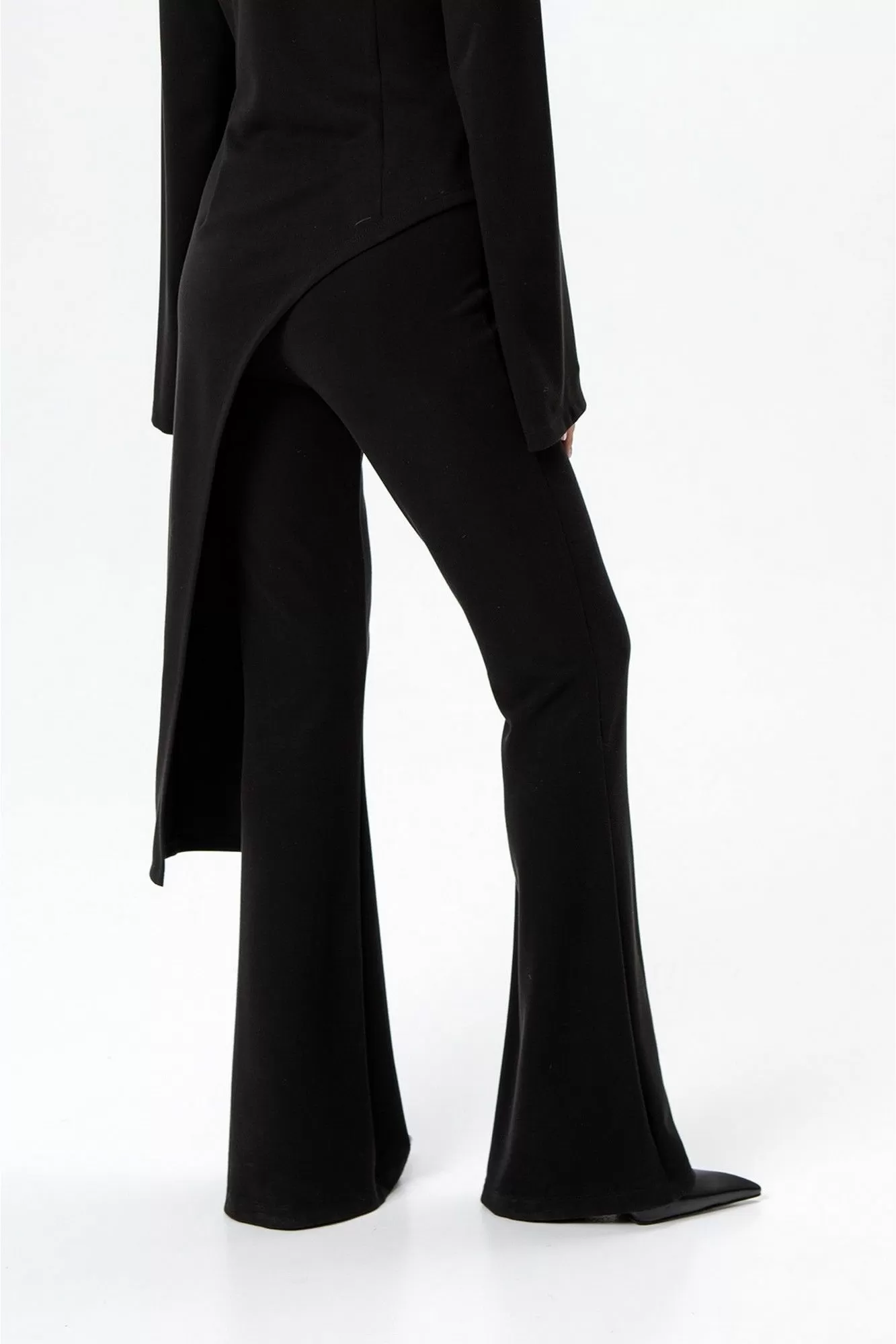 Комплект-двойка из текстильной оверсайз рубашки в клетку и трикотажных облегающих брюк-клеш.