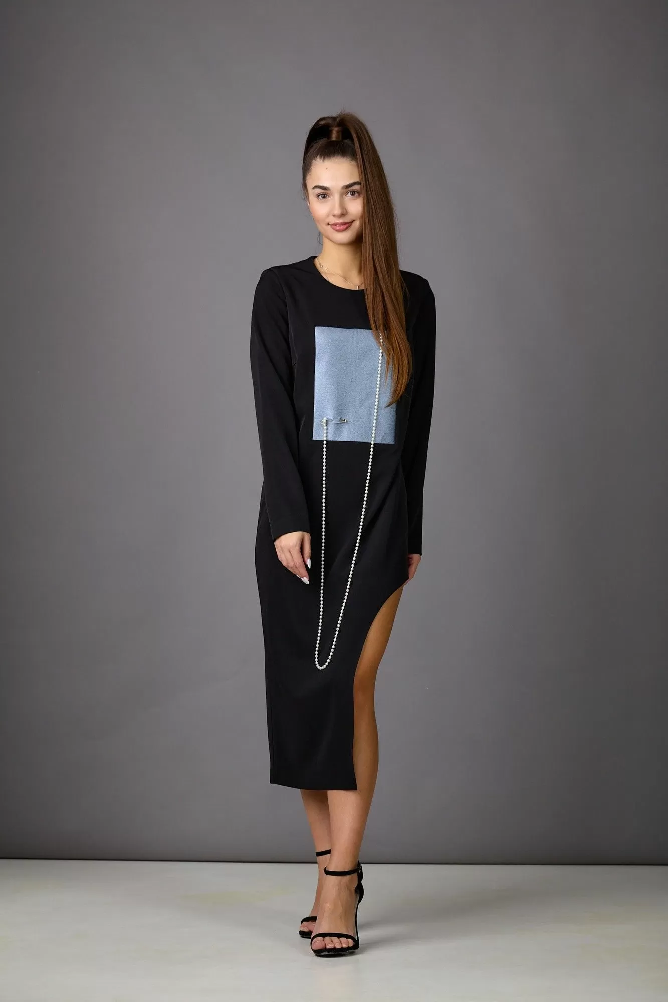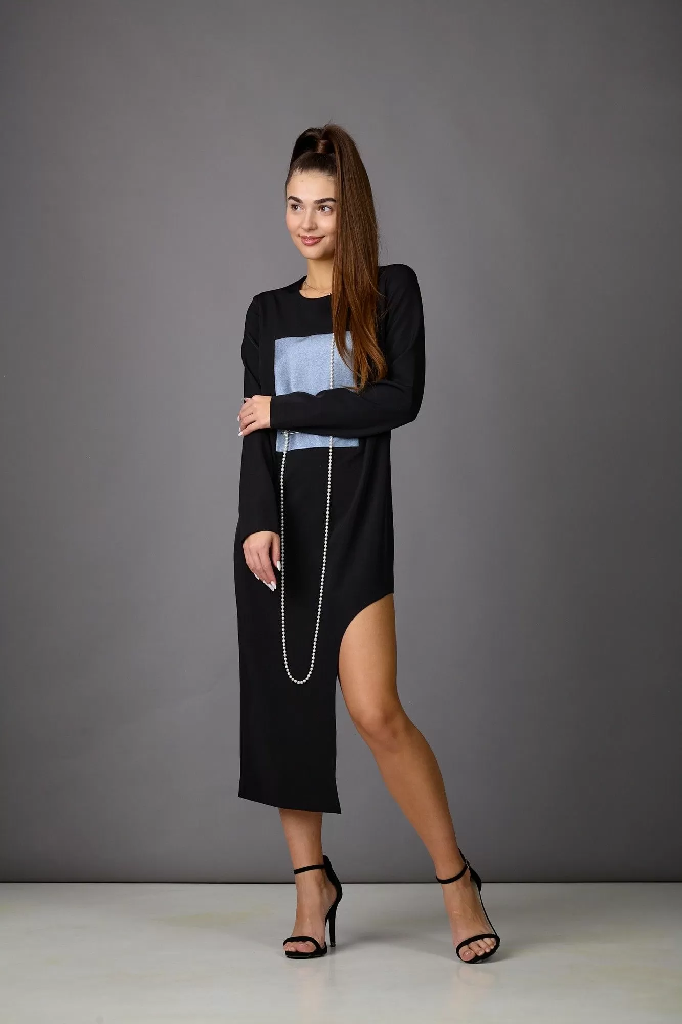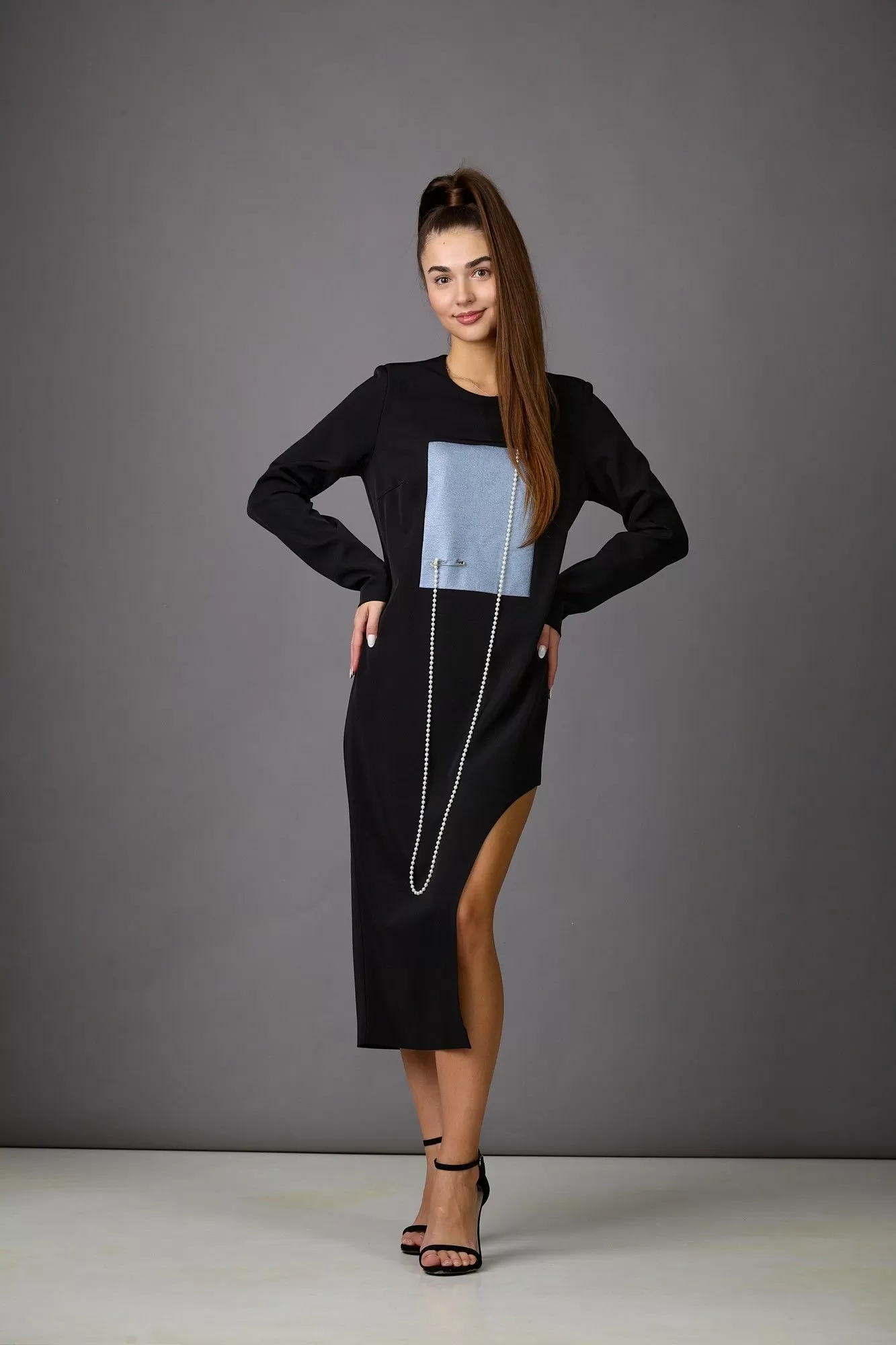 Представляем тунику из плательной ткани. Незаменимый наряд на вечеринку, корпоратив. Туника многофункциональна, можно одеть, как платье, она прекрасно сочетается с брюками, джинсами, легинсами, кружевной юбкой. Силуэт чуть приталенный, с нагрудными вытачками по переду и вытачками по спинке. по спинке-молния. Квадрат из серебристой ткани с булавками и жемчугом -то,что сделает ваш образ неповторимым. Скрасьте момент с Rosheli!