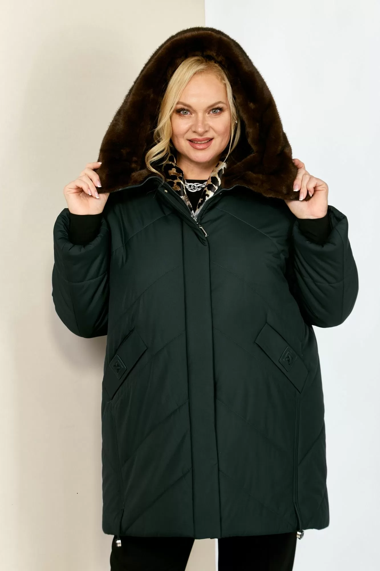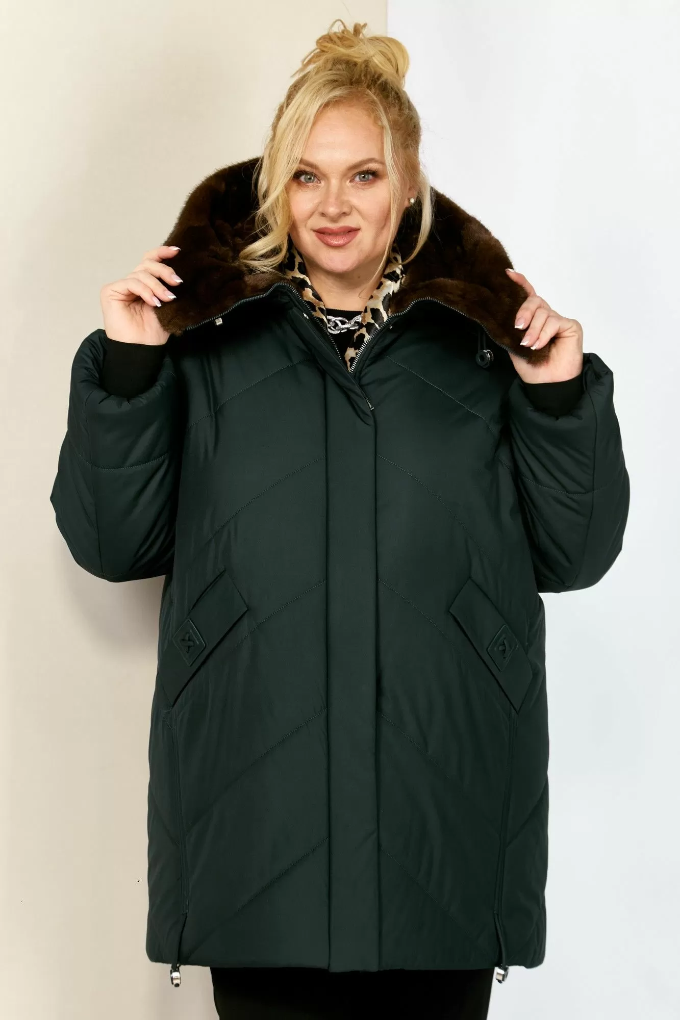 Зимняя, модная женская куртка, которая идеально подойдет для холодных дней, обеспечивая комфорт и защиту от ветра. Изделие прямого, классического стиля, выполнена из курточной матовой ткани высокого качества, непромокаемая. Утеплитель «Верблюжья шерсть» хорошо держит форму и не сбивается. По переду центральная застежка на молнии с планкой на металлические кнопки. Карманы прорезного типа на магнитах и декоративным элементом. Рукав втачной. Для защиты от ветра и мороза, рукава по низу дополнены внутренними трикотажными манжетами. Капюшон не съемный, регулируется декоративным шнуром. Внутренняя часть капюшона отделана мехом, максимально по внешнему виду приближенного к натуральному «Норка». Боковые швы оформлены декоративным шнуром. Спинка цельная. Низ изделия на регулируемой кулисе, что позволит сохранить тепло в холодное время года.
