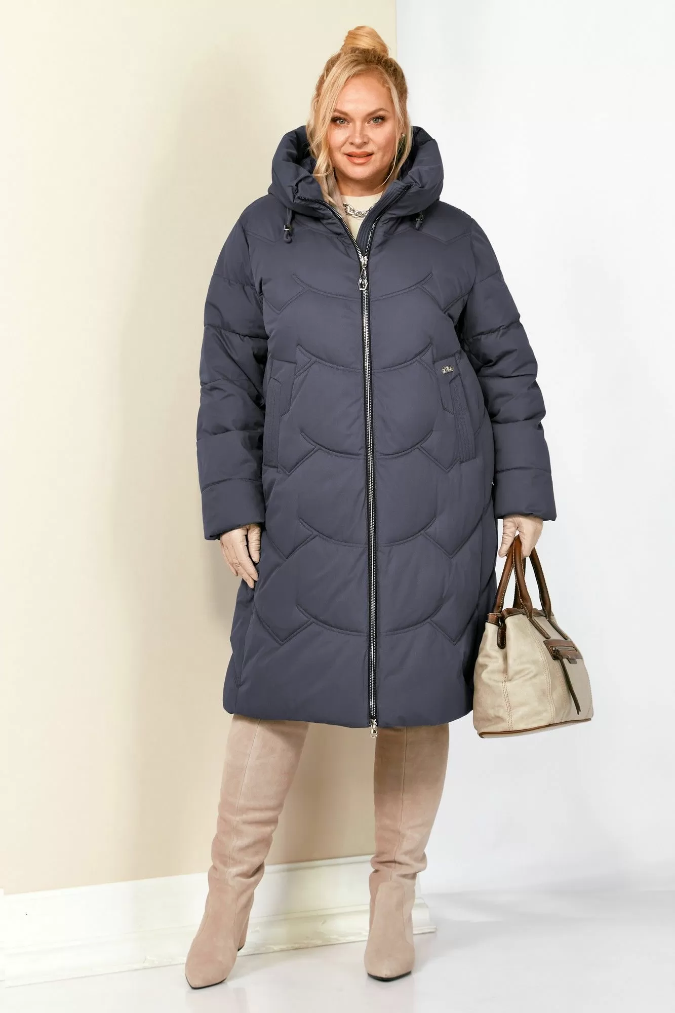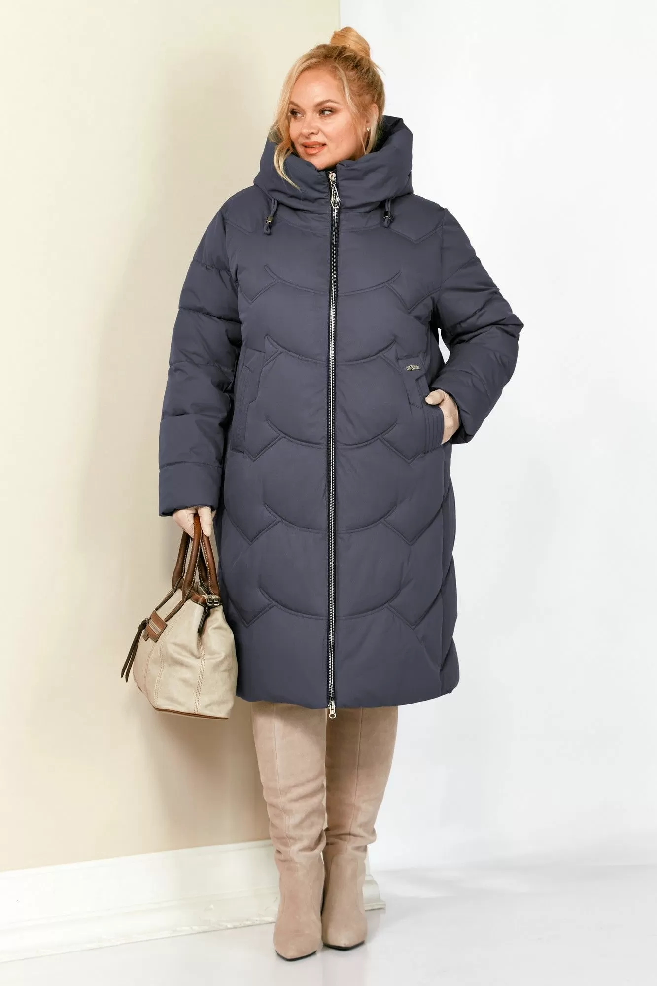 Уютное, зимнее пальто с воротником-стойкой переходящим в капюшон. Пальто удобное в носке, лёгкое и в тоже время очень теплое. Изделие выполнено из курточной матовой ткани высокого качества непромокаемое, на утеплителе «Био пух», который хорошо держит форму и не сбивается. На подкладке.