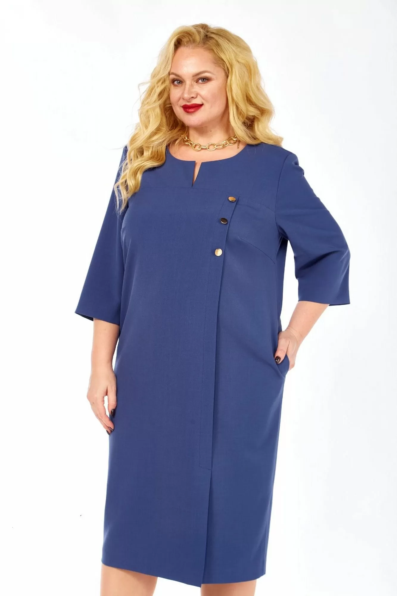 Силуэт полуприлегающий. Рукав втачной, одношовный. Длина рукава 42см. Перед с отрезной кокеткой и нагрудными вытачками. Горловина по центру кокетки с разрезом. Слева, вниз от кокетки выполнена складка, декорированная 3-мя металлическими пуговицами. Внизу складки - шлица высотой 28см. На уровне бёдер выполнены потайные карманы. Длина платья по спинке 110см. Платье выполнено из костюмно-плательной ткани. 58 р. – ПОГ 61 ПОБ 62