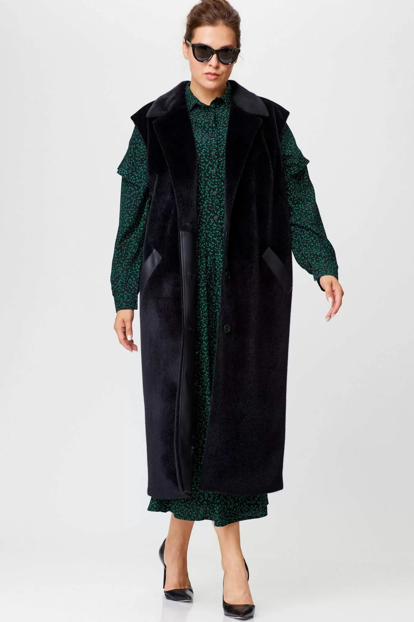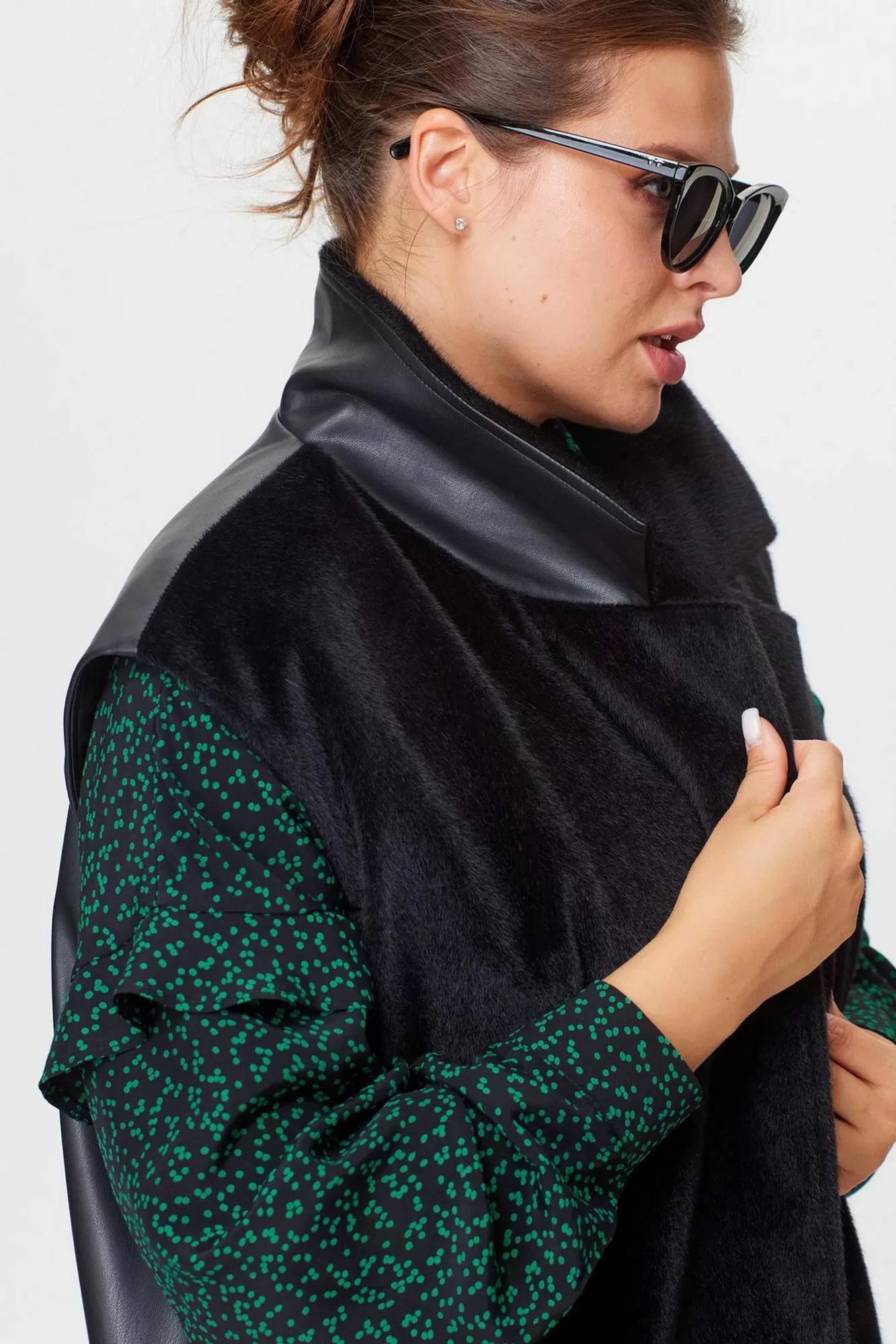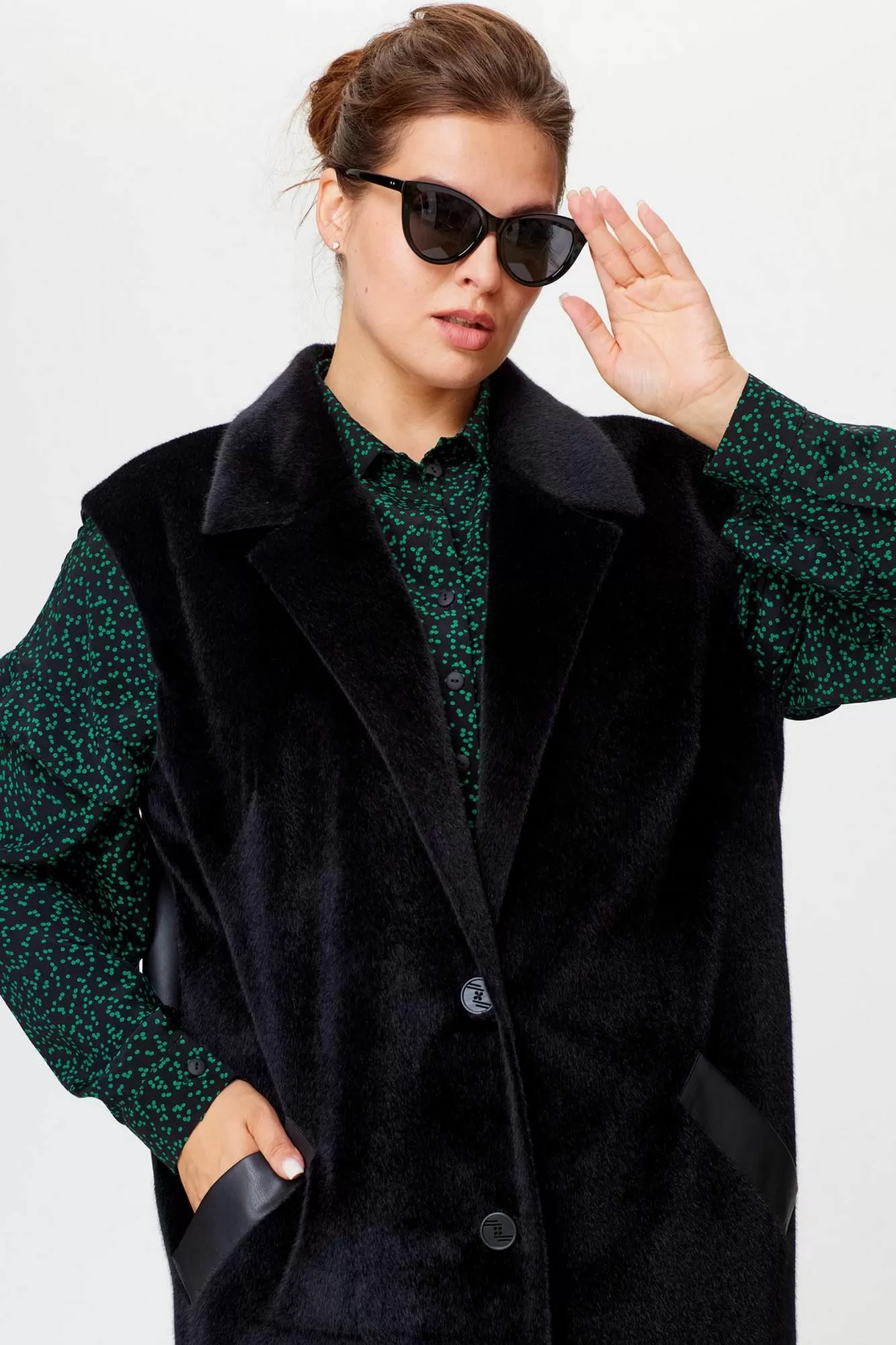 Стильно и дорого! Удлинённый жилет выполнен из комбинирования двух видов ткани. Искусственный мех и экокожа - это всегда интересное сочетание. Модель прямого силуэта, удлиненная с застежкой на петли пуговицы, функциональные карманы. Воротник отложной, нижняя часть воротника выполнена из экокожи. Жилет идеально
