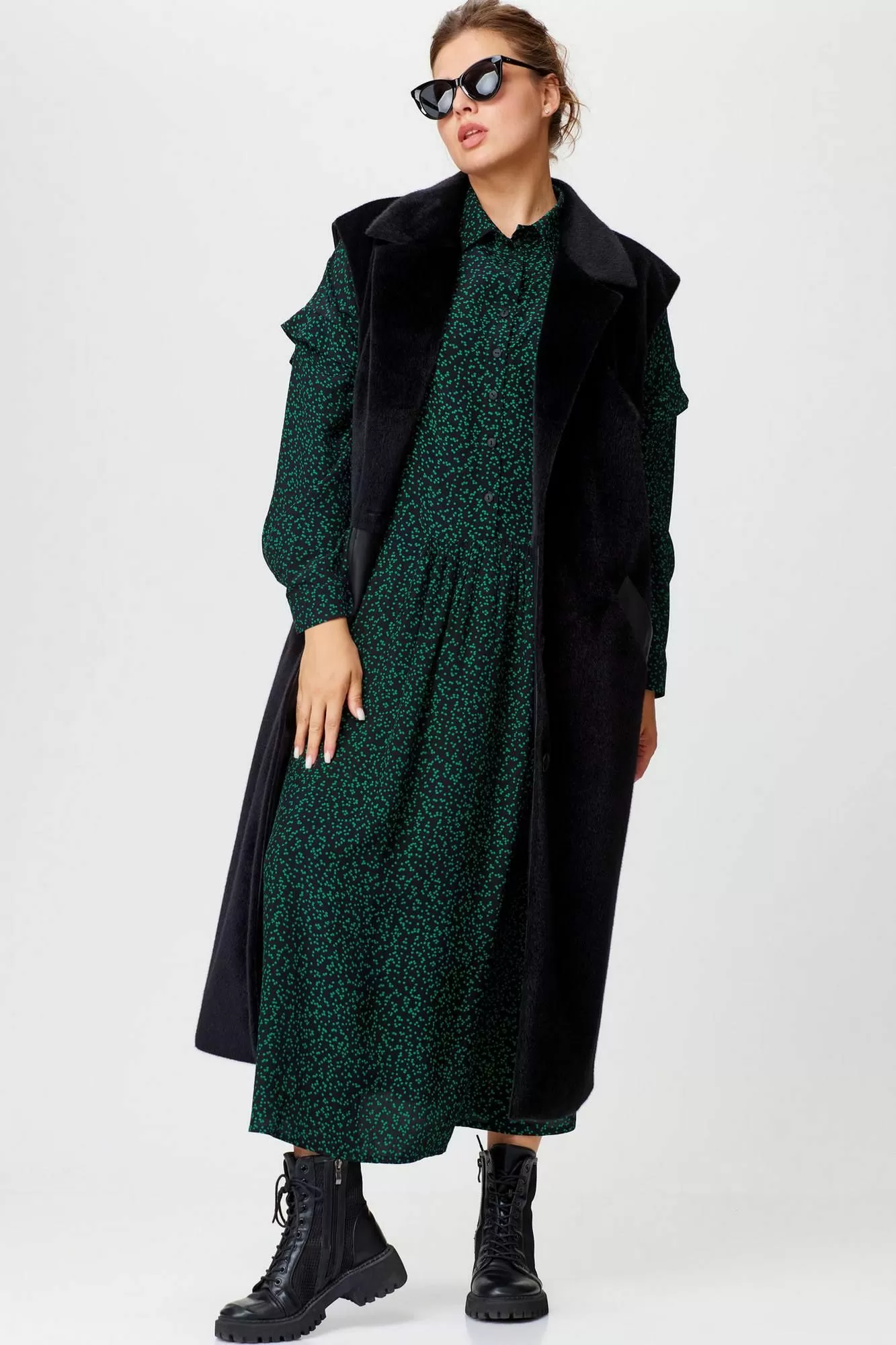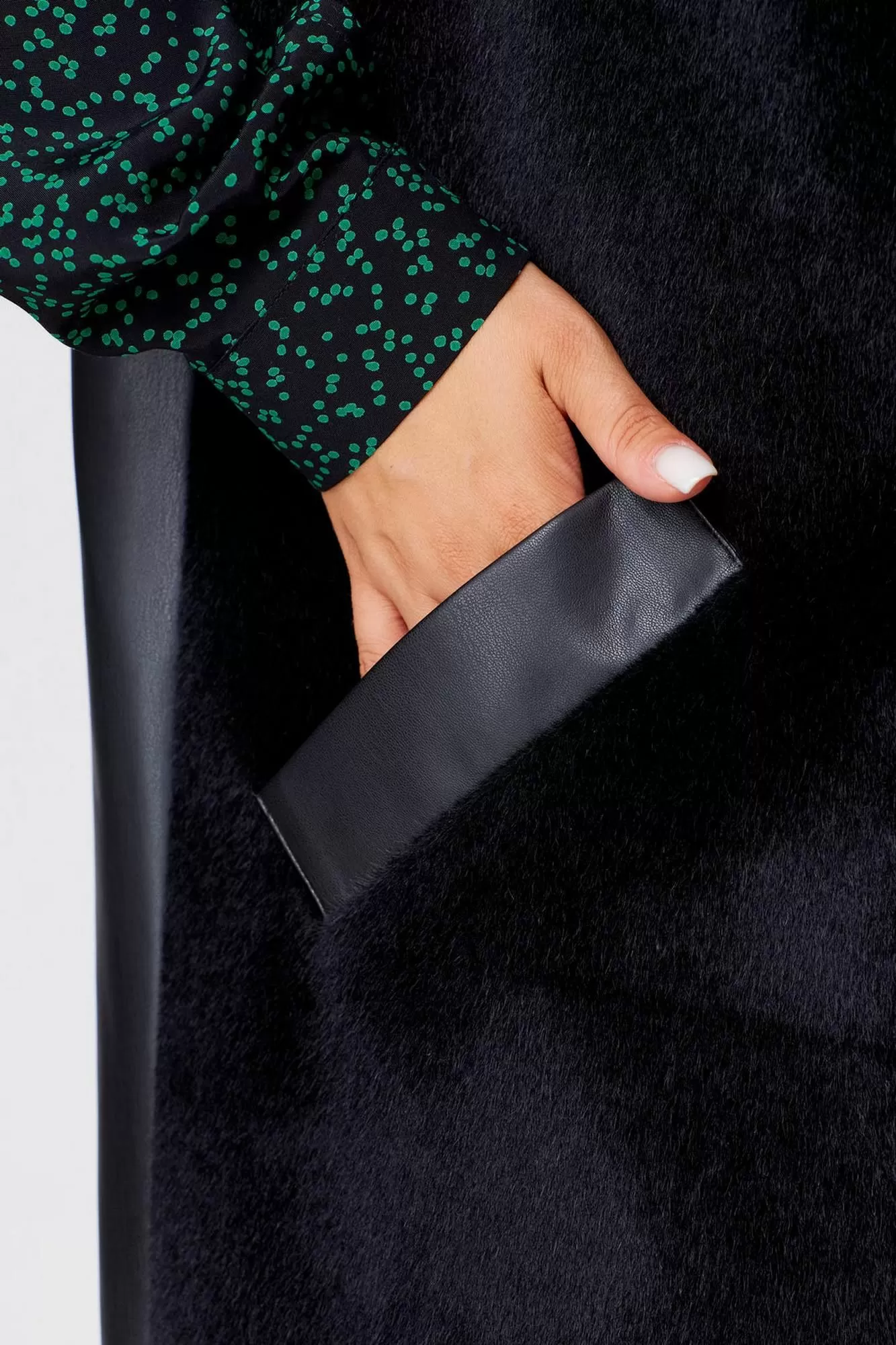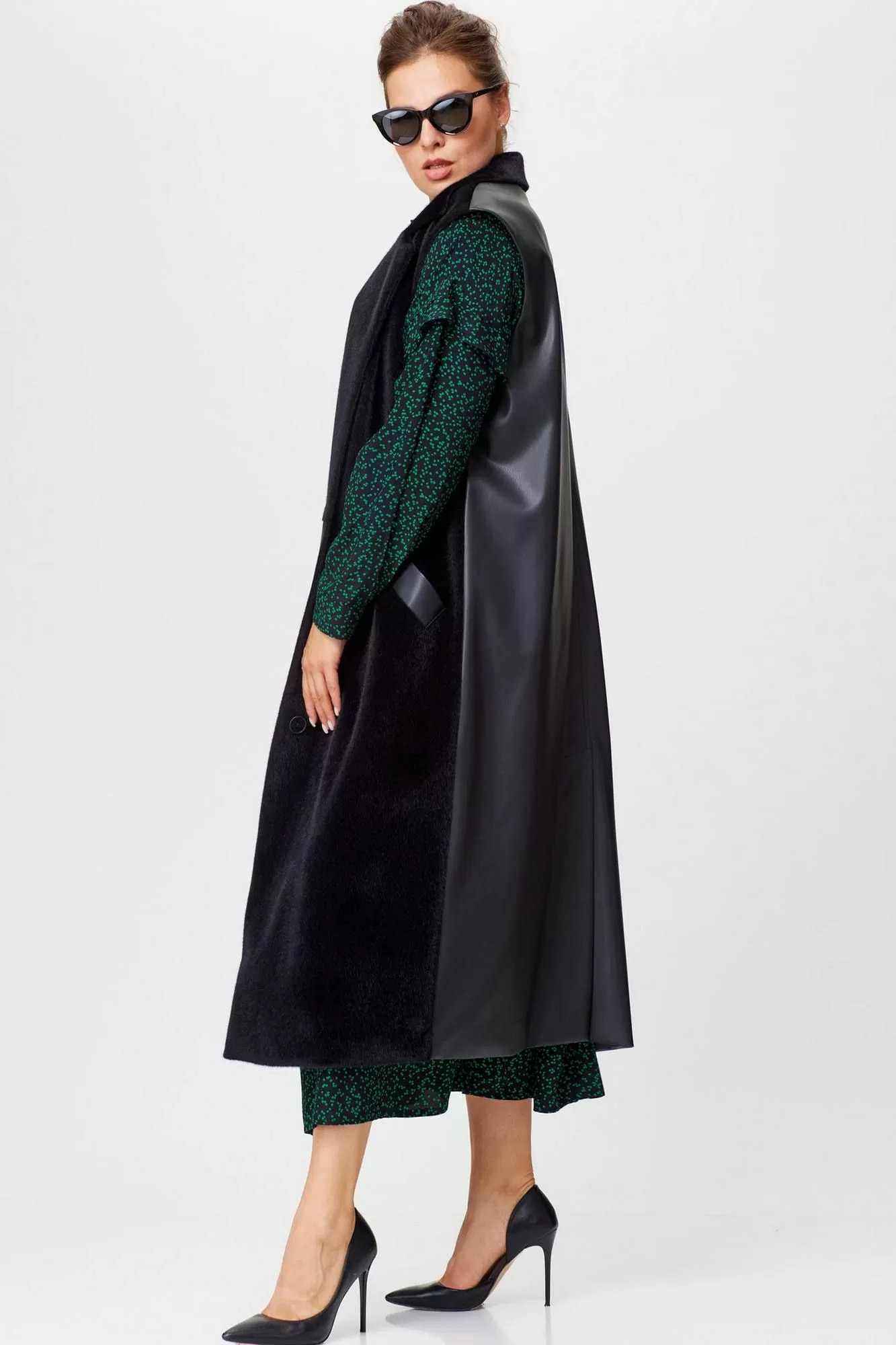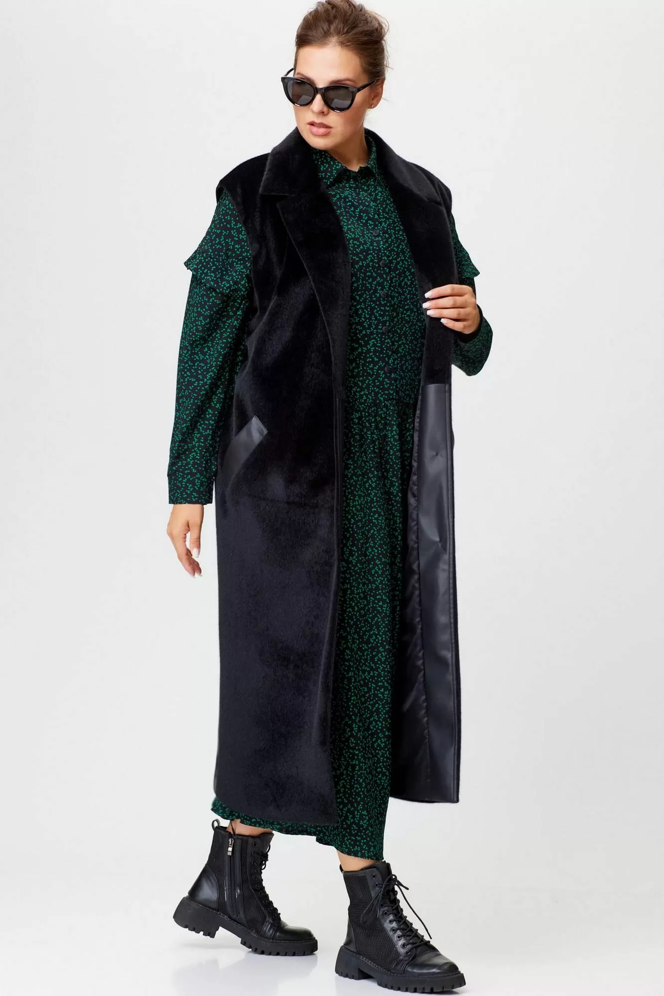 Стильно и дорого! Удлинённый жилет выполнен из комбинирования двух видов ткани. Искусственный мех и экокожа - это всегда интересное сочетание. Модель прямого силуэта, удлиненная с застежкой на петли пуговицы, функциональные карманы. Воротник отложной, нижняя часть воротника выполнена из экокожи. Жилет идеально