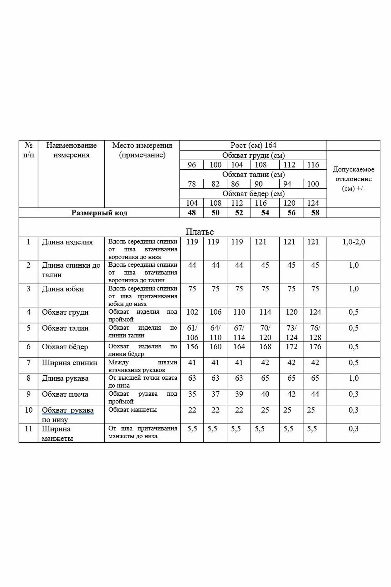 Длина рукава 62 см (+ - 1 см)