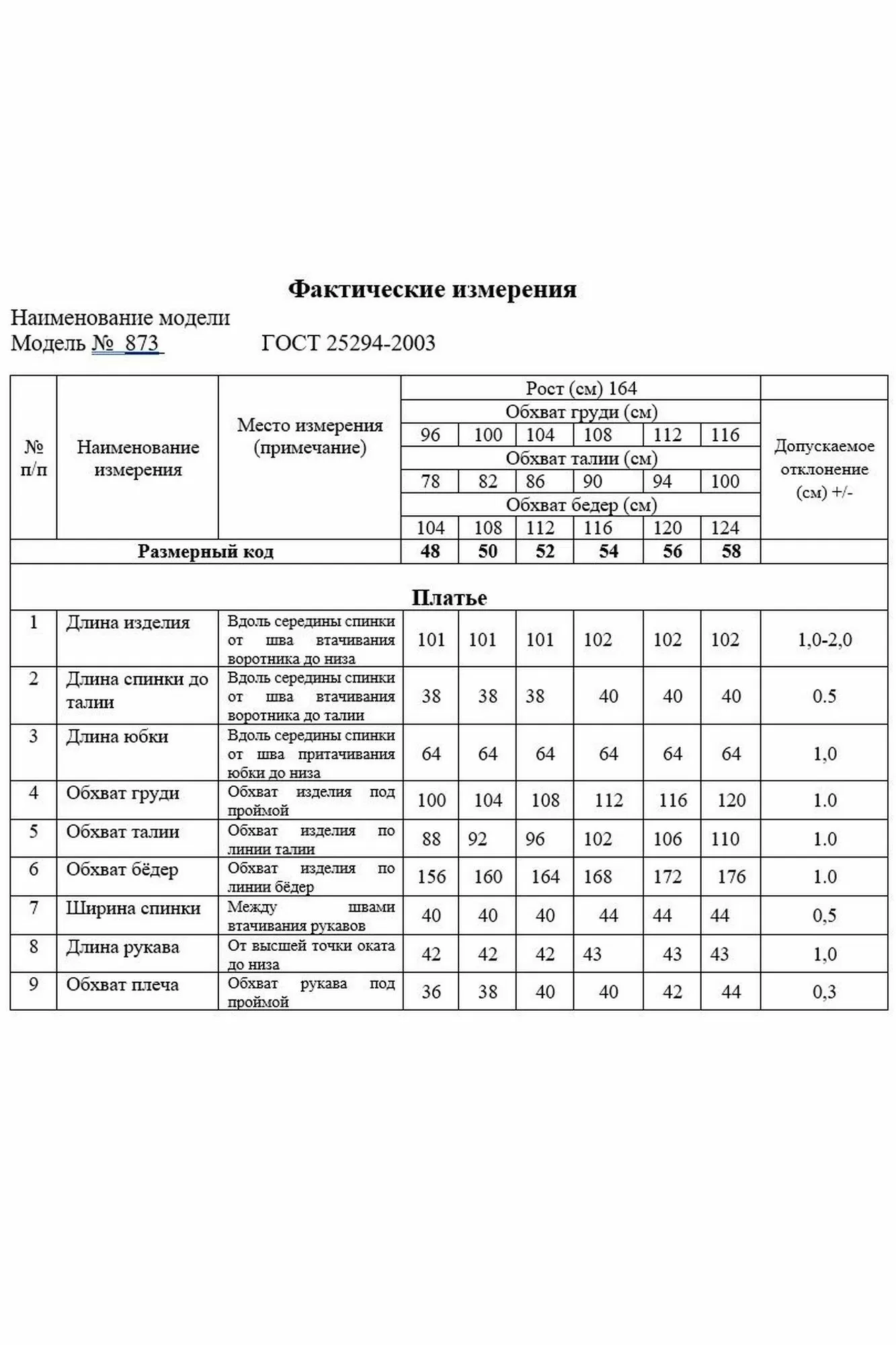 Длина изделия по спинке – 101 см. (+/-1 см.)