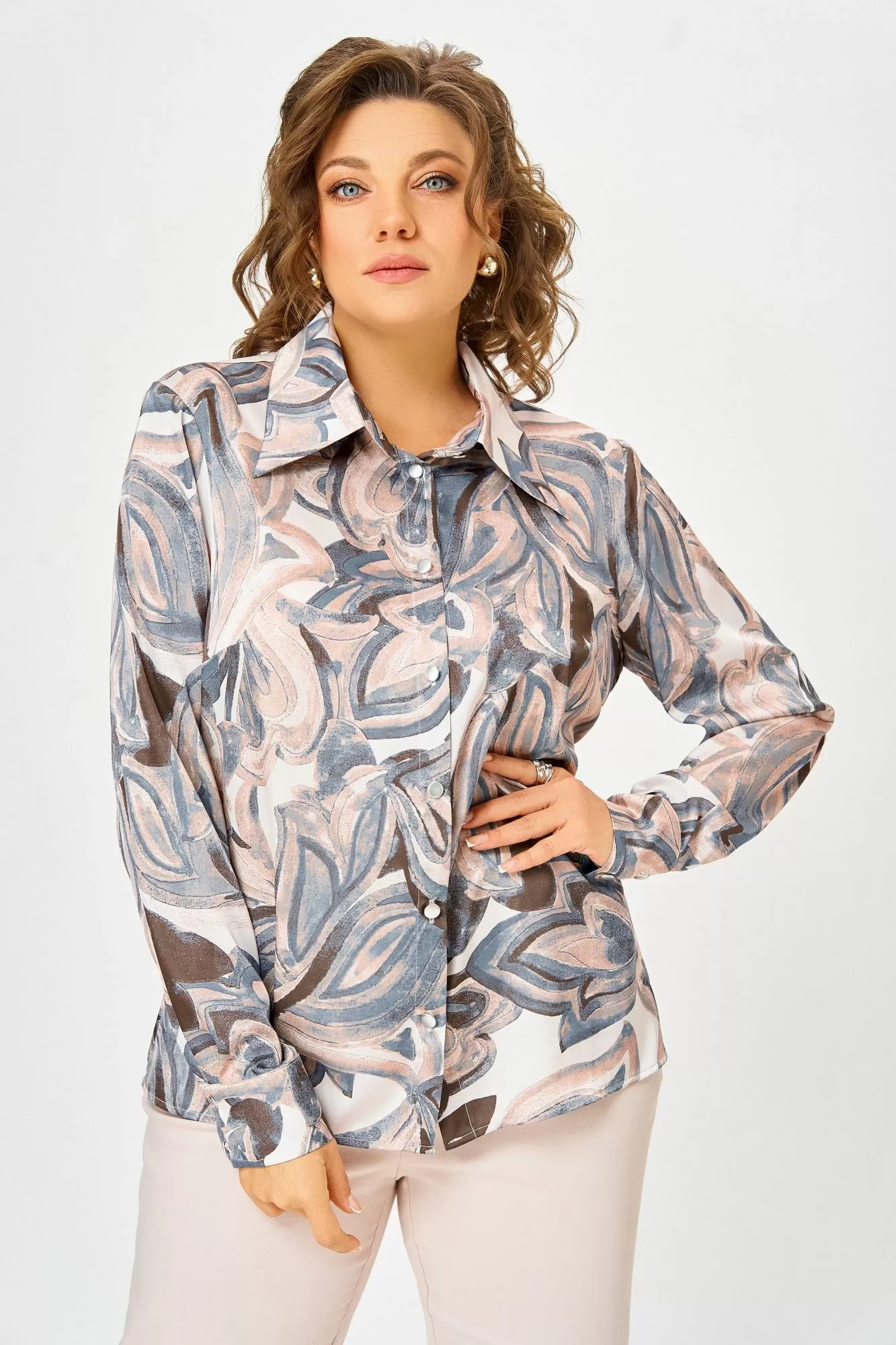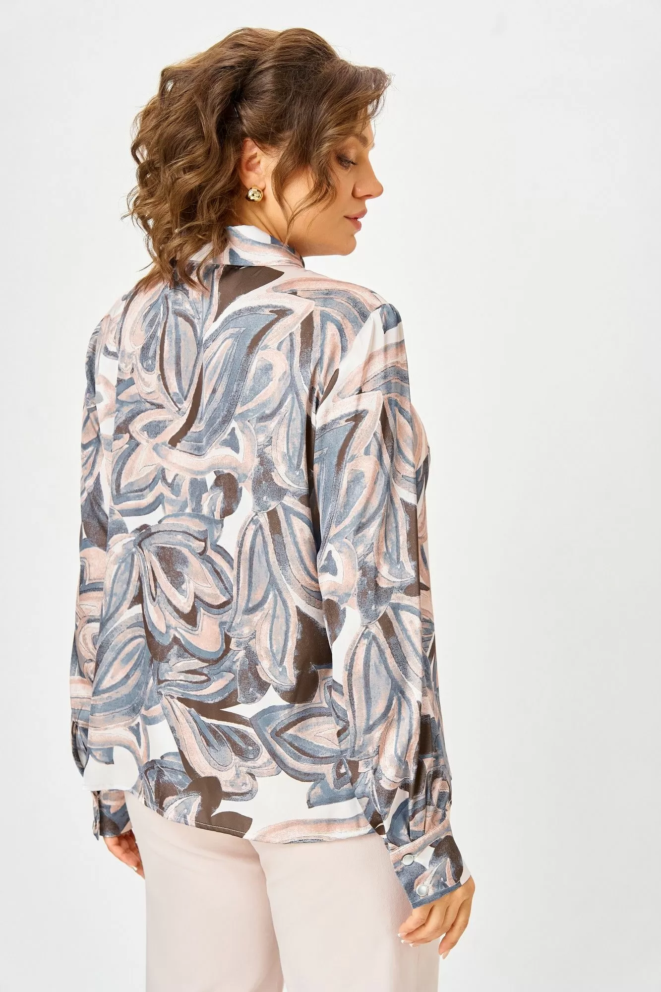 Блузка из нежной ткани «армани», имитирующей шёлк, прямого силуэта с центральной застёжкой на петли и декоративные пуговицы.