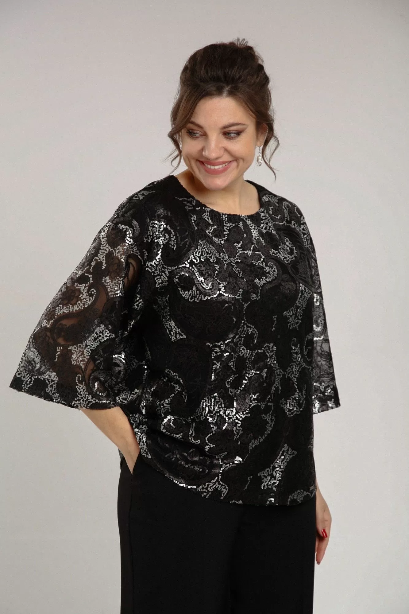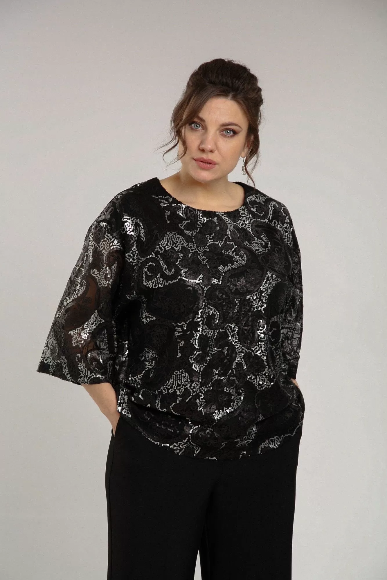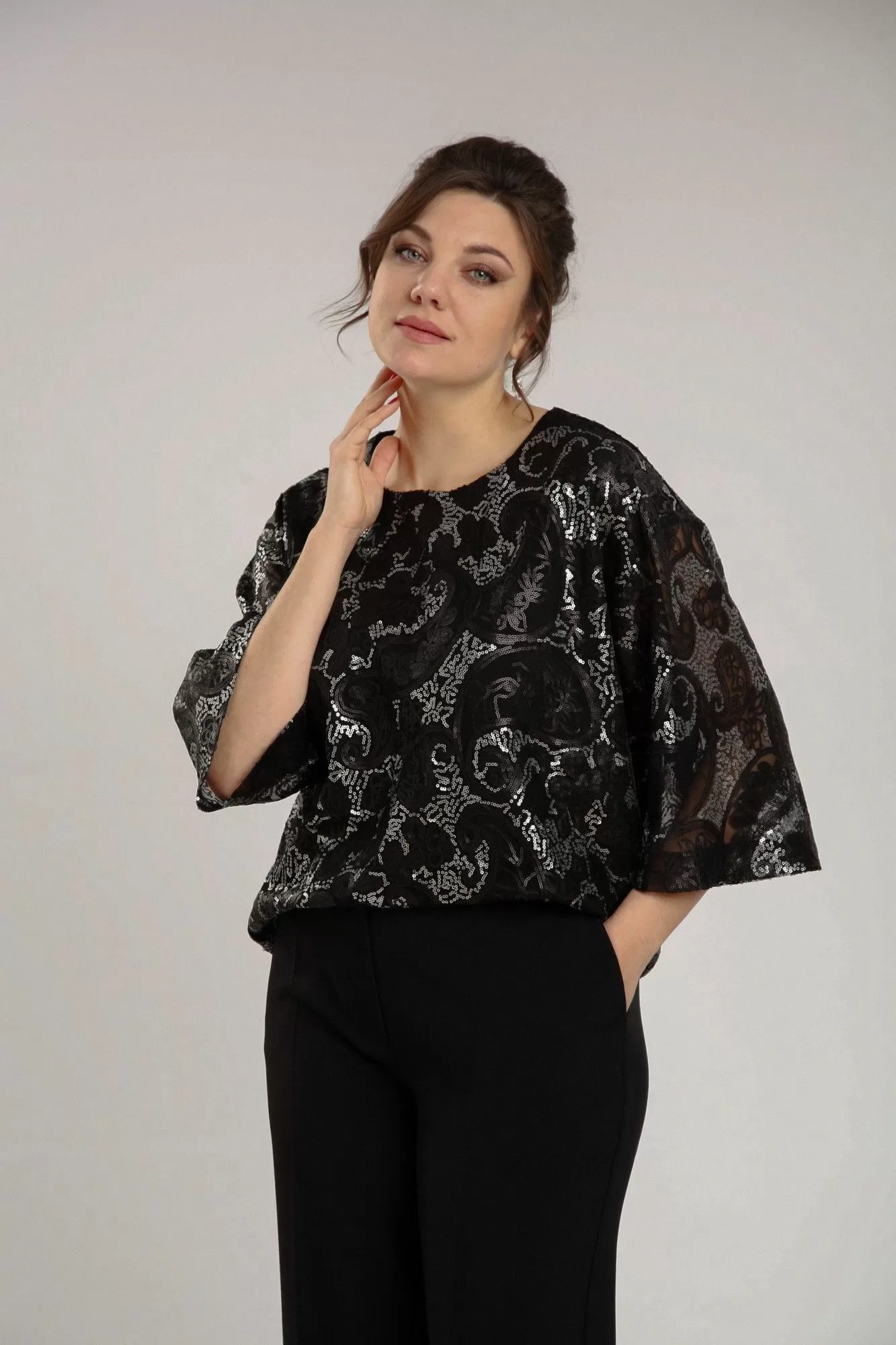 Блуза женская, свободного силуэта. Горловина округлой формы. Рукав спущенный 3/4